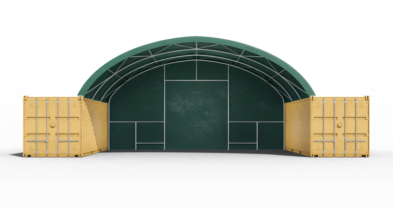 Featuring our lower profile of 2.5m high arch with 4 x 76mm diam @ 2mm gauge, rolled structural steel, double end V braced portals and 5 purlin sets of superior strength, providing a total height of 5.09m (GP containers). Combining our high level of specification with our industry-leading 610gsm, UV stabilised, Ripstop, PVC, bonded covers together with the best ratchet tensioning system, you’ll quickly discover that this is a significantly higher level of quality and durability.